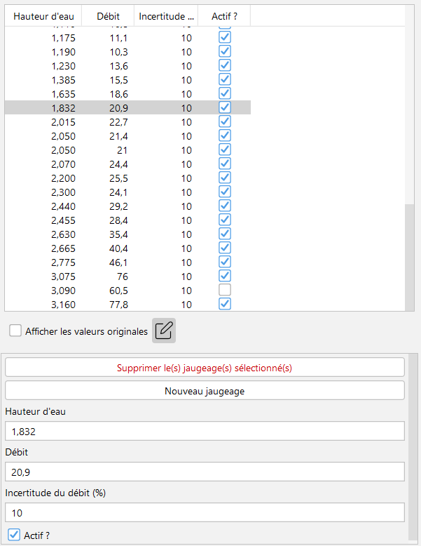 Si vous souhaitez modifier, supprimer ou ajouter un ou plusieurs jaugeages, vous avez deux possibilités :